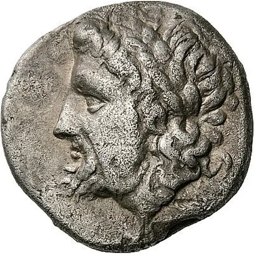 | Obverse description | Laureate and bearded head of Zeus to left |