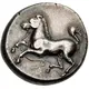 | Popis líce | Bridled horse springing to left, with trailing rein. |