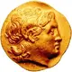 | Reverse description | Athena seated left, holding Nike, crowning the king`s name, in her right hand and leaning with her left arm on shield decorated with lion`s head; monogram to inner left, tunny fish left in exergue. |