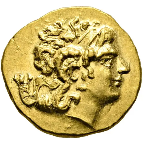 表面の説明 Head of the deified Alexander III with tiara and horn of Ammon