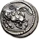 Description de l’avers Goat kneeling right, head reverted; dotted rosette above.