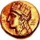 | Reverse description | Draped bust of male left, with long sideburn and hair in tight ringlets falling down back of neck, wearing crown decorated with semicircular plates, and torque. Greek inscription on the right field. |