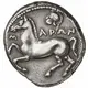 | Descrizione del dritto | Free horse springing to left, above, crested helmet facing left and on the left, Σ |