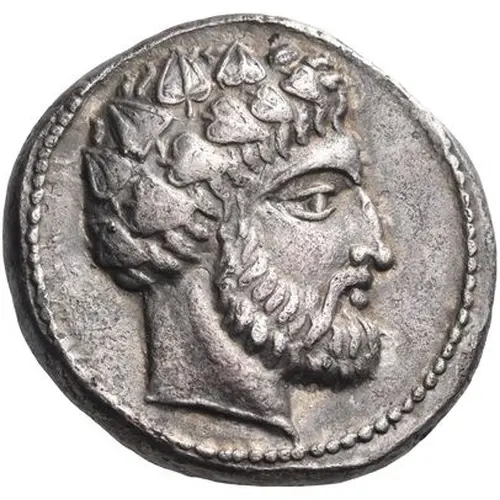 | Obverse description | Bearded head of Dionysos to right, wearing ivy wreath. |
