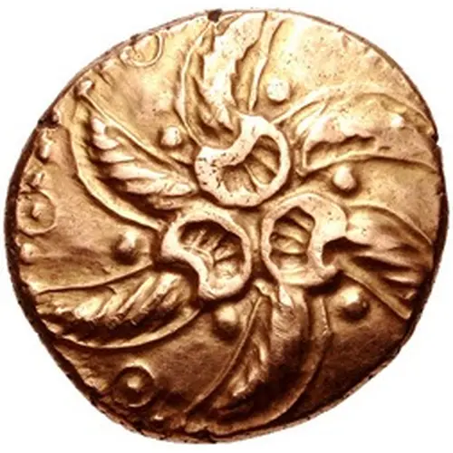 | Reverse description | Celticized horse right, ruler`s name above, cornucopia below, pellet in ring motif below tail |