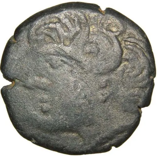 Beschrijving keerzijde Horse leaping left, eagle with wings spread above; beneath, three circles, each with pellet at centre; legend between fore and hind legs.