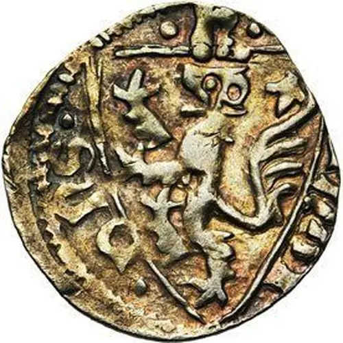 Reverse description Long double cross with balls at tips. Letters in the angles spelling moneyer`s name.