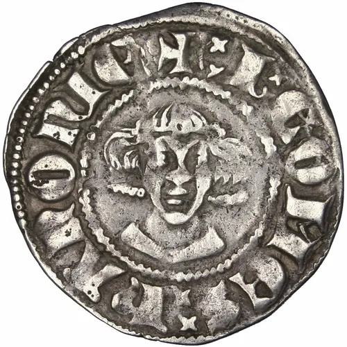 | Obverse lettering | ✠ ⁑ I ⁑ COMЄS ⁑ hAnOnIЄ . (Translation: John, Count of Hainaut) |