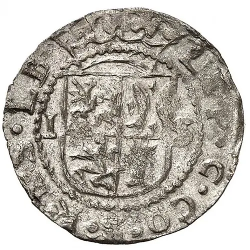 | Obverse description | Quartered arms divides date, within beaded inner circle. |