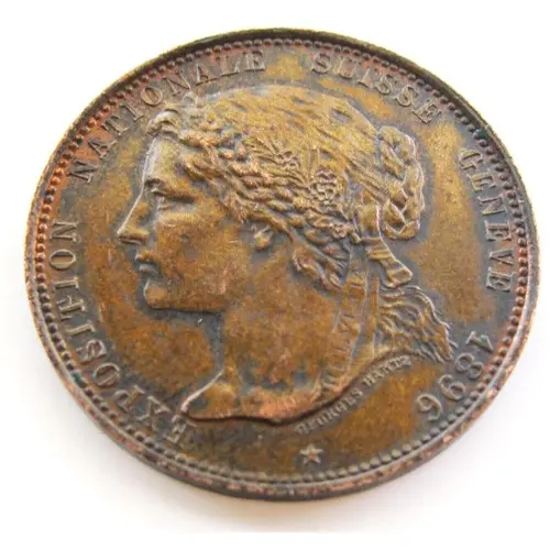 | Obverse lettering | EXPOSITION NATIONALE SUISSE GENEVE 1896 ★ HELVETIA GEORGES HANTZ (Translation: Swiss National Exhibition in Geneva.) |