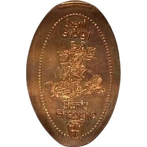 | Descripción del anverso | Saint George slaying the dragon with inscription above and under and coat of arms at the bottom, dots all around |