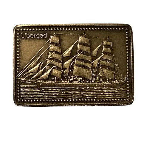 | Reverse lettering | Tall Ships of the World collection Antique Gold on Solid Bronze La Collection des Grands Voiliers Or antique sur Bronze massif LOMBARDO solid bronze massif Québec 1534-1984 |