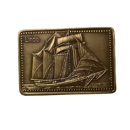 | Reverse lettering | Tall Ships of the World collection Antique Gold on Solid Bronze La Collection des Grands Voiliers Or antique sur Bronze massif LOMBARDO solid bronze massif Québec 1534-1984 |