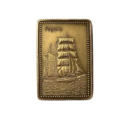 | Reverse lettering | Tall Ships of the World collection Antique Gold on Solid Bronze La Collection des Grands Voiliers Or antique sur Bronze massif LOMBARDO solid bronze massif Québec 1534-1984 |