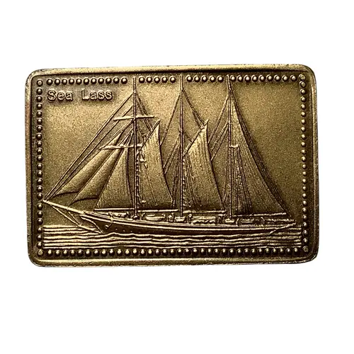 | Reverse lettering | Tall Ships of the World collection Antique Gold on Solid Bronze La Collection des Grands Voiliers Or antique sur Bronze massif LOMBARDO solid bronze massif Québec 1534-1984 |