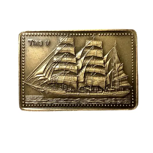 | Reverse lettering | Tall Ships of the World collection Antique Gold on Solid Bronze La Collection des Grands Voiliers Or antique sur Bronze massif LOMBARDO solid bronze massif Québec 1534-1984 |