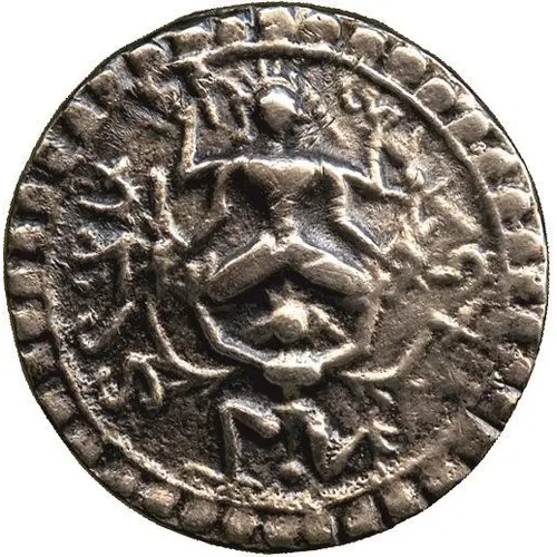 | Obverse description | Vishnu seated crosslegged, supported by Garuda |
