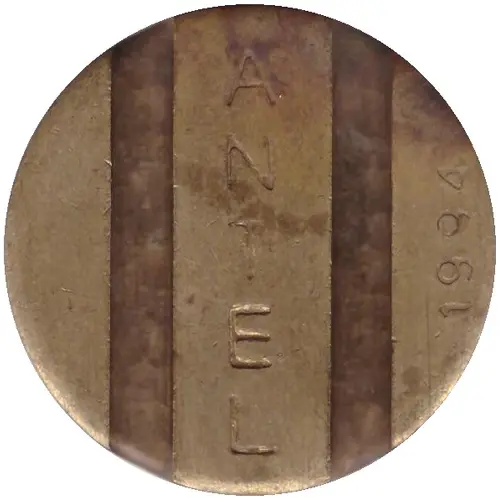 Obverse description Vertical acronym `ANTEL` between two grooves, date on right. turned 90º