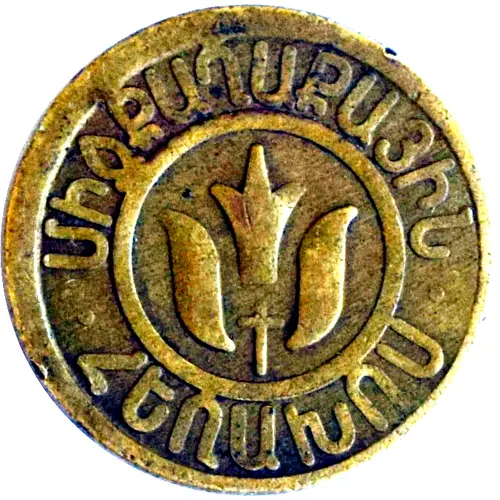 | Obverse description | Stylized ornament (plant) in the center, Armenian lettering on top and bottom. |