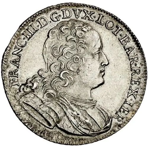 FRANC · III · D · G · DVX · LOT · BAR · REX · IER (Translation: Francis III. by God`s grace Duke of Lorraine, Bar, King of Jerusalem.) |
