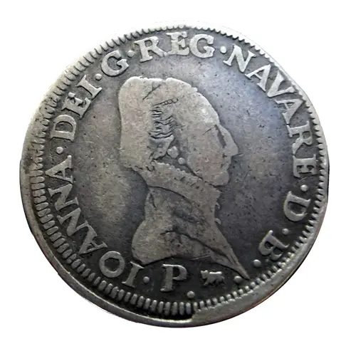.IOANNA. DEI. G. REG. NAVARE. D. B. (Translation: Joan, by the grace of god, queen of Navarra and lord of Bearn.) |