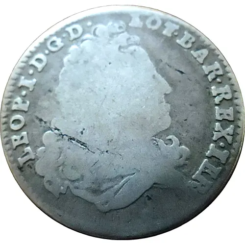 Leop.I.D.G.D.LOT.BAR.REX.IER (Translation: Leopold I, by God`s grace, duke of Lorraine, Bar, King of Jerusalem.) |