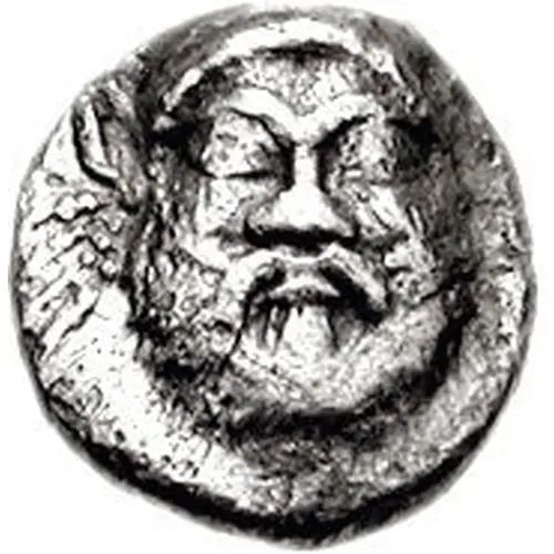 | Obverse description | Facing head of Silenos |