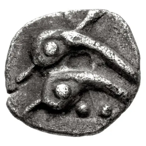 | Obverse description | Two dolphins swimming left with two pellets below |