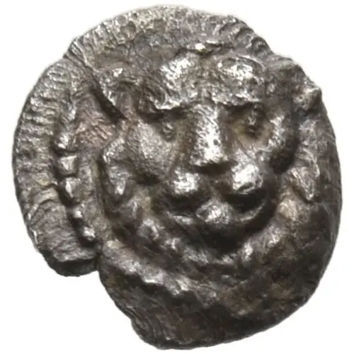 | Reverse description | Bearded male head facing (Dionysos?). |