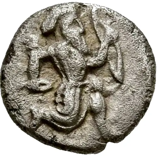 Obverse description Persian king or hero in kneeling-running stance to right, holding dagger in right hand and bow in left hand.