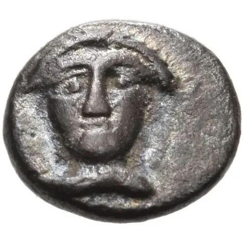 | Aversbeschreibung | Facing head, with cloak tied at the neck. |