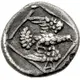 Reverse description Eagle flying right; monogram below; all within linear square border.