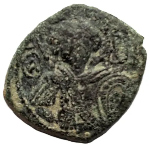 Popis líce Bust of St. George nimbate, holding a spear and shield