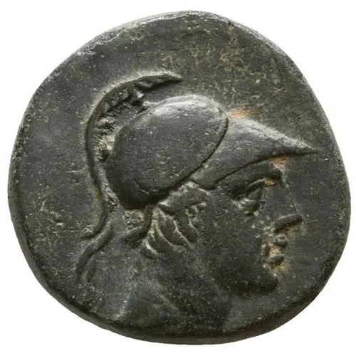 | Aversbeschreibung | Helmeted head of Ares, right. |