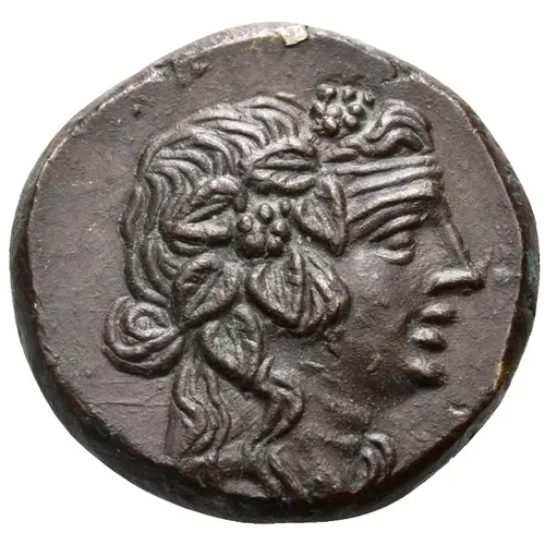 | Aversbeschreibung | Wreathed head of Mithradates VI as young Dionysos right. |