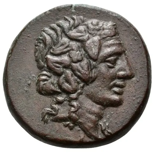 | Descripción del anverso | Wreathed head of Mithradates VI as young Dionysos right. |