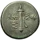 Reverse description A sword in its upright scabbard with shoulder strap, dividing lettering; monogram in left field.