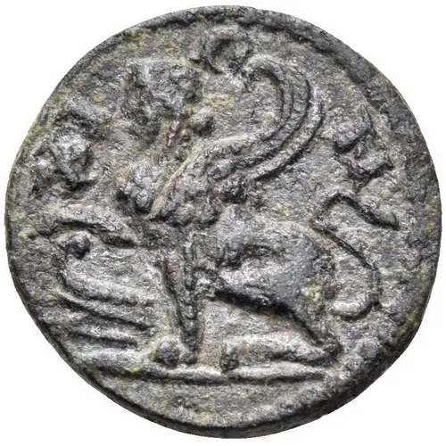 | Obverse description | Sphinx seated, left, raising forepaw over prow. |