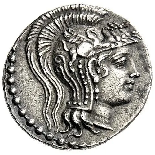 | Obverse description | Head of Athena right, wearing crested Attic helmet, bowl decorated with griffin. |