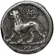 | Reverse description | Lion walking left, monogram in wreath above. |