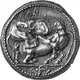 | Obverse description | Lion right, attacking bull kneeling to left and biting into his hind quarters; above ΔΗ. In exergue, grape cluster with leaf and tendrils. |