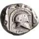 | Reverse description | Crested Corinthian helmet to right within incuse square. |