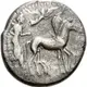 | Obverse description | Charioteer driving walking quadriga right. Above it Nike flying towards right and crowning the horses. |
