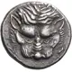 | Obverse description | Lion-mask; symbols: olive-sprig, olive-branch and hare, grapes. |