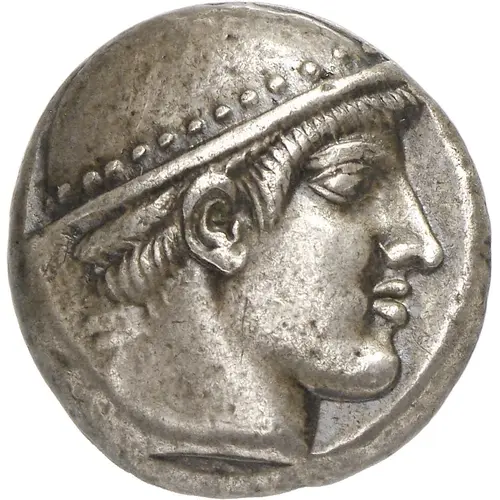 | 表面の説明 | Head of Hermes, right, wearing petasus. |