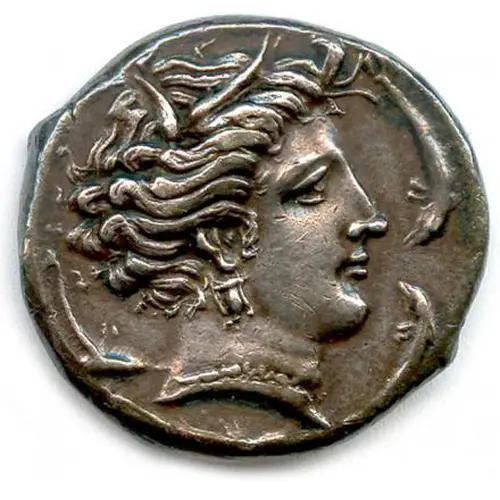 | Ön yüz açıklaması | Head of the Nymph Arethusa, surrounded by dolphins. |