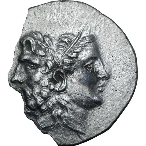 | Obverse description | Janiform head composed of a laureate and bearded head of Zeus to left and a diademed head of Hera to right. |
