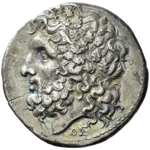 | Obverse description | Head of Zeus Naios of Dodona left, wearing oak-wreath; below neck truncation, Θ and ΣΕ monogram. |