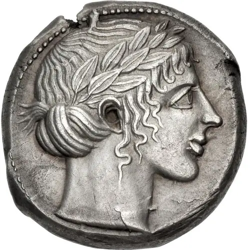 | Descripción del anverso | Laureate head of Apollo facing right. |