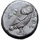| 裏面の説明 | Owl standing right, head facing; olive sprig, crescent and grape bunch behind, AΘE before. |